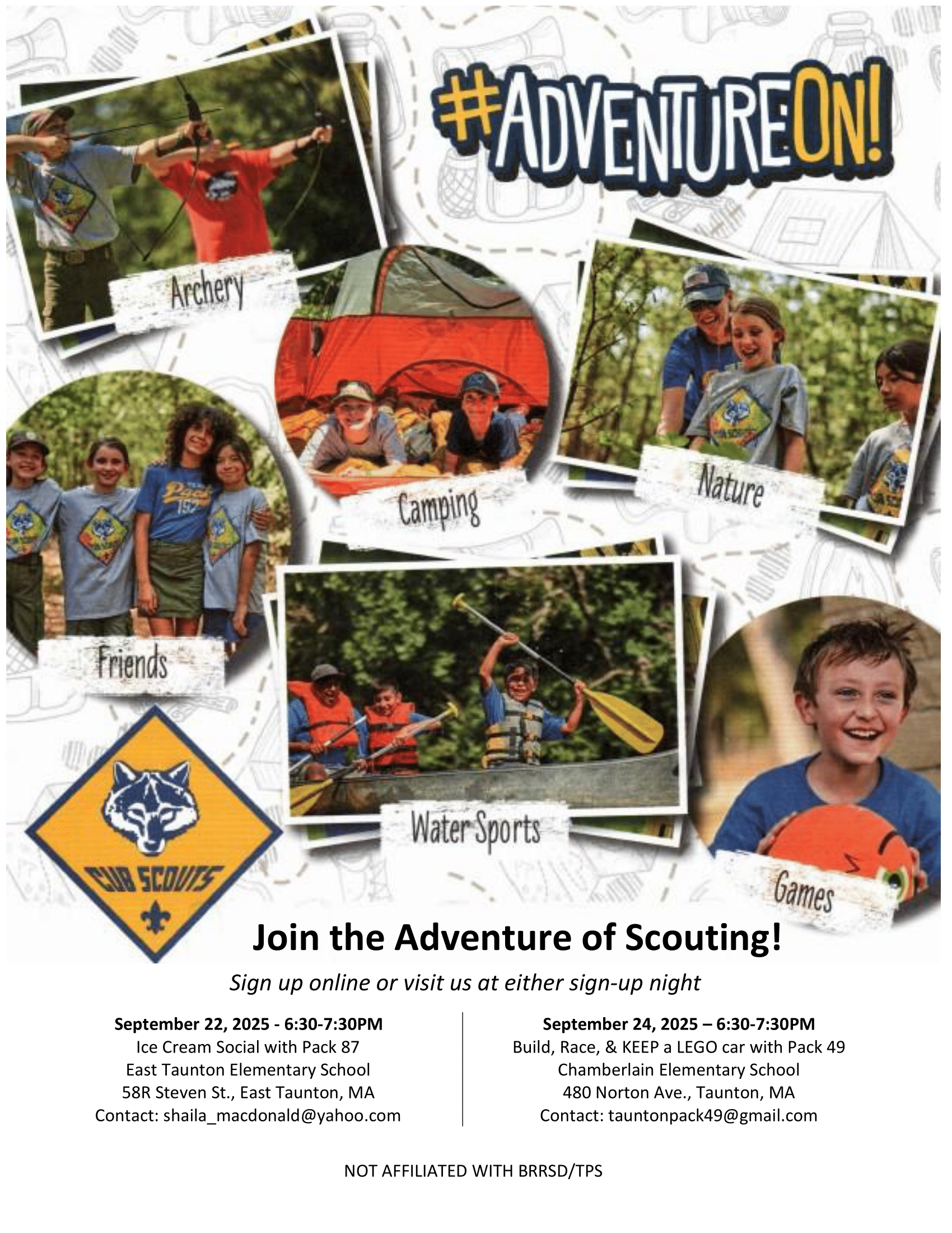 Virtual Backpack is the Taunton Public Schools' "green" approach to distributing community flyers and information. Check here often for information about local events and programs of interest to students and families. To submit a flyer to the Virtual Backpack, please contact Stephanie Hoye, Director of Student Services and Transportation, at [email protected].